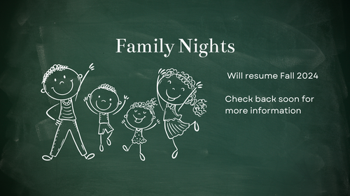 During Family Night, the church and families will come together for a meal, worship, and then break into small groups. The Christian faith is best lived in relationship with other believers, and these relationships have the power to change us. John Wesley, the founder of Methodism, believed that God is uniquely at work in Christians' lives through intentional, faithful conversations in small group settings. We may hear the message of the Gospel at church, but small groups empower us through group dialogue to become that message for the world.